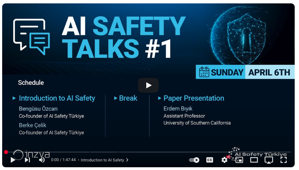 Geçtiğimiz hafta, inzva iş birliğiyle gerçekleştirdiğimiz AI Safety Talks serisinin ilk etkinliğini düzenledik!